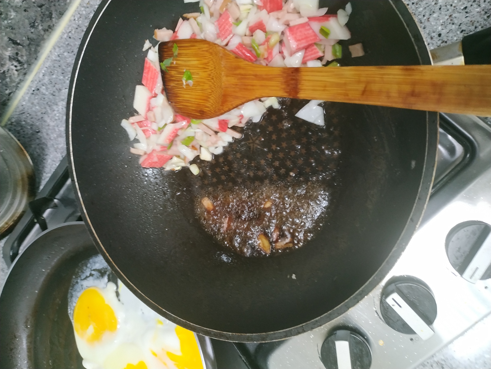 계란을 웍에서 같이 익혀줘도 되지만 깔끔한 볶음밥을 원하면 따로 조리하는 걸 추천~